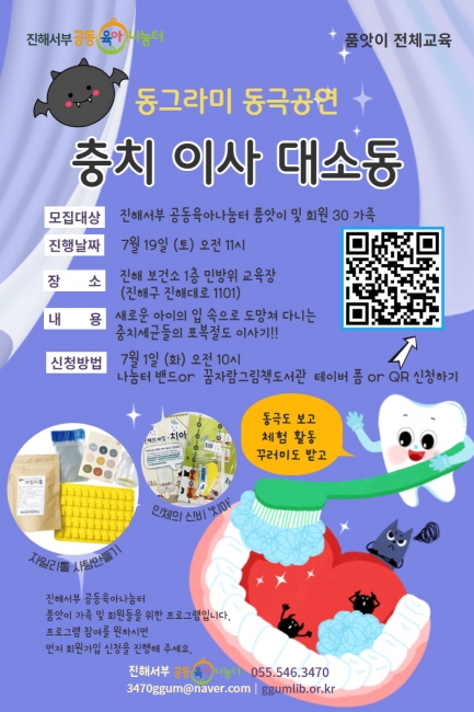 <진해서부 공동육아나눔터>7월 품앗이 전체교육 '건강한 치카포카' 참여자 모집안내