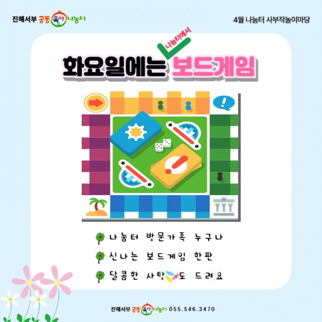 나눔터 소식 게시판 - <진해서부 공동육아나눔터> 4월 사부작놀이마당 <나눔터에서 보드게임> 활동안내