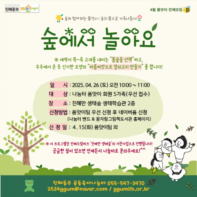 나눔터 소식 게시판 - [진해동부 공동육아나눔터] 4월 품앗이 전체모임 <숲에서 놀아요> 안내