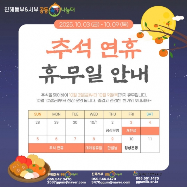 진해동부 & 진해서부 공동육아나눔터 추석 연휴 안내