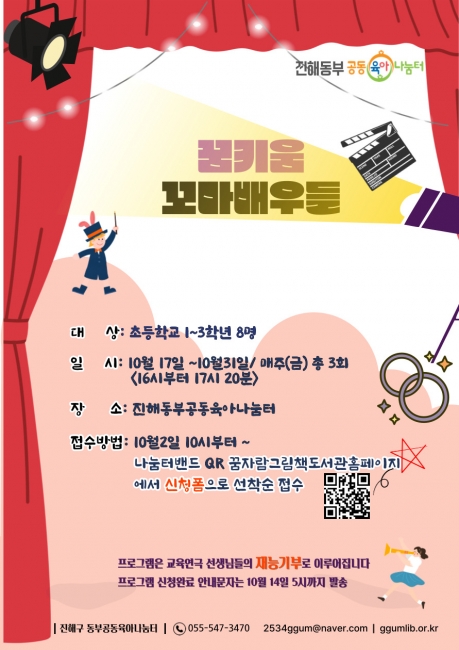 (진해동부공동육아나눔터)10월 재능기부프로그램 '꿈키움 꼬마배우들' 참여자 모집안내
