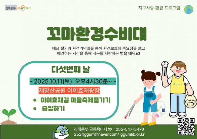 (진해동부공동육아나눔터)10월 상시프로그램 '꼬마환경수비대' 참여자 모집안내
