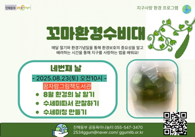 나눔터 소식 게시판 - (진해동부공동육아나눔터)8월 '꼬마환경수비대' 참여자 모집안내