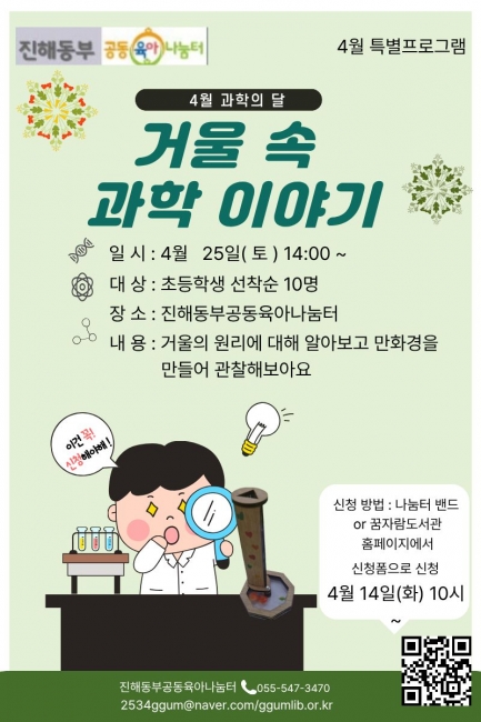 나눔터 소식 게시판 - (진해동부공동육아나눔터) 4월 과학의달프로그램'거울 속 과학이야기' 신청안내